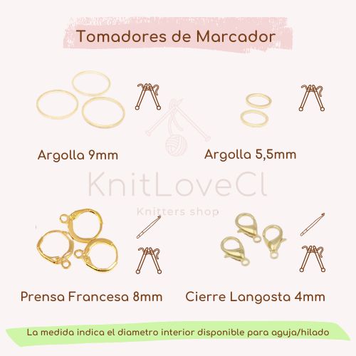 | Tomador | Argolla 5,5 mm, Argolla 9 mm, Cierre Langosta, Palanca Francesa |